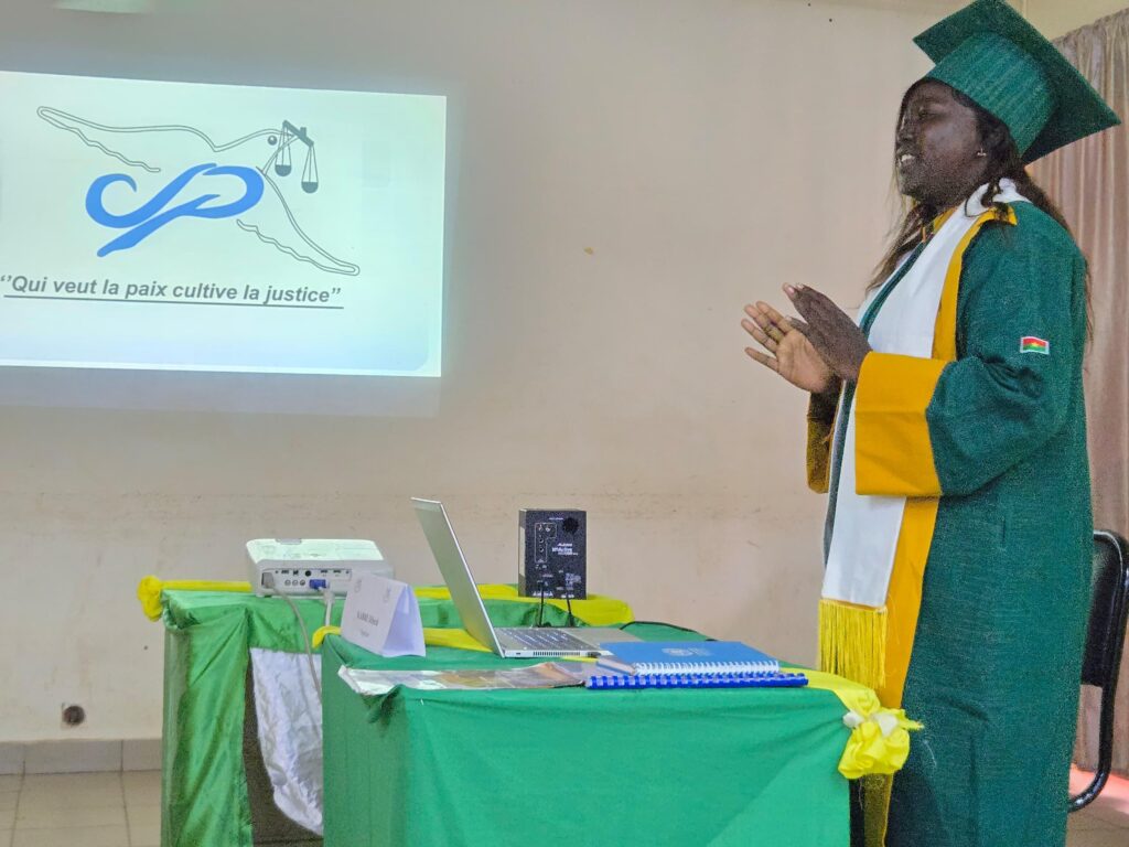 « 𝑳𝒆𝒔 𝒂𝒄𝒕𝒊𝒐𝒏𝒔 𝒅𝒆 𝒄𝒐𝒎𝒎𝒖𝒏𝒊𝒄𝒂𝒕𝒊𝒐𝒏 𝒅𝒆 𝒍𝒂 𝑪𝒐𝒎𝒎𝒊𝒔𝒔𝒊𝒐𝒏 𝒆́𝒑𝒊𝒔𝒄𝒐𝒑𝒂𝒍𝒆 𝑱𝒖𝒔𝒕𝒊𝒄𝒆 𝒆𝒕 𝑷𝒂𝒊𝒙 𝒑𝒐𝒖𝒓 𝒍𝒂 𝒓𝒆́𝒊𝒏𝒔𝒆𝒓𝒕𝒊𝒐𝒏 𝒔𝒐𝒄𝒊𝒂𝒍𝒆 𝒅𝒆𝒔 𝒇𝒆𝒎𝒎𝒆𝒔 𝒂𝒄𝒄𝒖𝒔𝒆́𝒆𝒔 𝒅𝒆 𝒔𝒐𝒓𝒄𝒆𝒍𝒍𝒆𝒓𝒊𝒆 𝒂𝒖 𝑩𝒖𝒓𝒌𝒊𝒏𝒂 𝑭𝒂𝒔𝒐 𝒅𝒆 2024-2025 », c’est le thème qu’a défendu Déborah KABRE lors de sa soutenance de fin de cycle en vue de l’obtention de son diplôme d’Assistante en Sciences et Techniques de l’Information et de la Communication. La présentation s’est déroulée dans la soirée du 24 juin 2025 à l’Institut des Sciences et Techniques de l’Information et de la Communication (ISTIC).